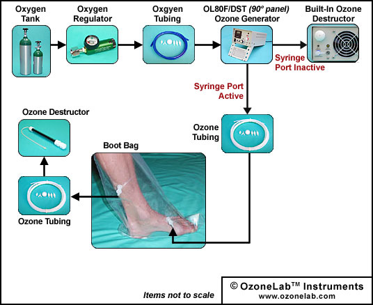 The below highlighted example is an attempt to try and allow clients to visualize a specific ozone generator application setup. This example represents one of many different possible applications. Boot Bagging using an OL80F/DST Ozone Generator fed with an oxygen feed (Tank & Regulator).